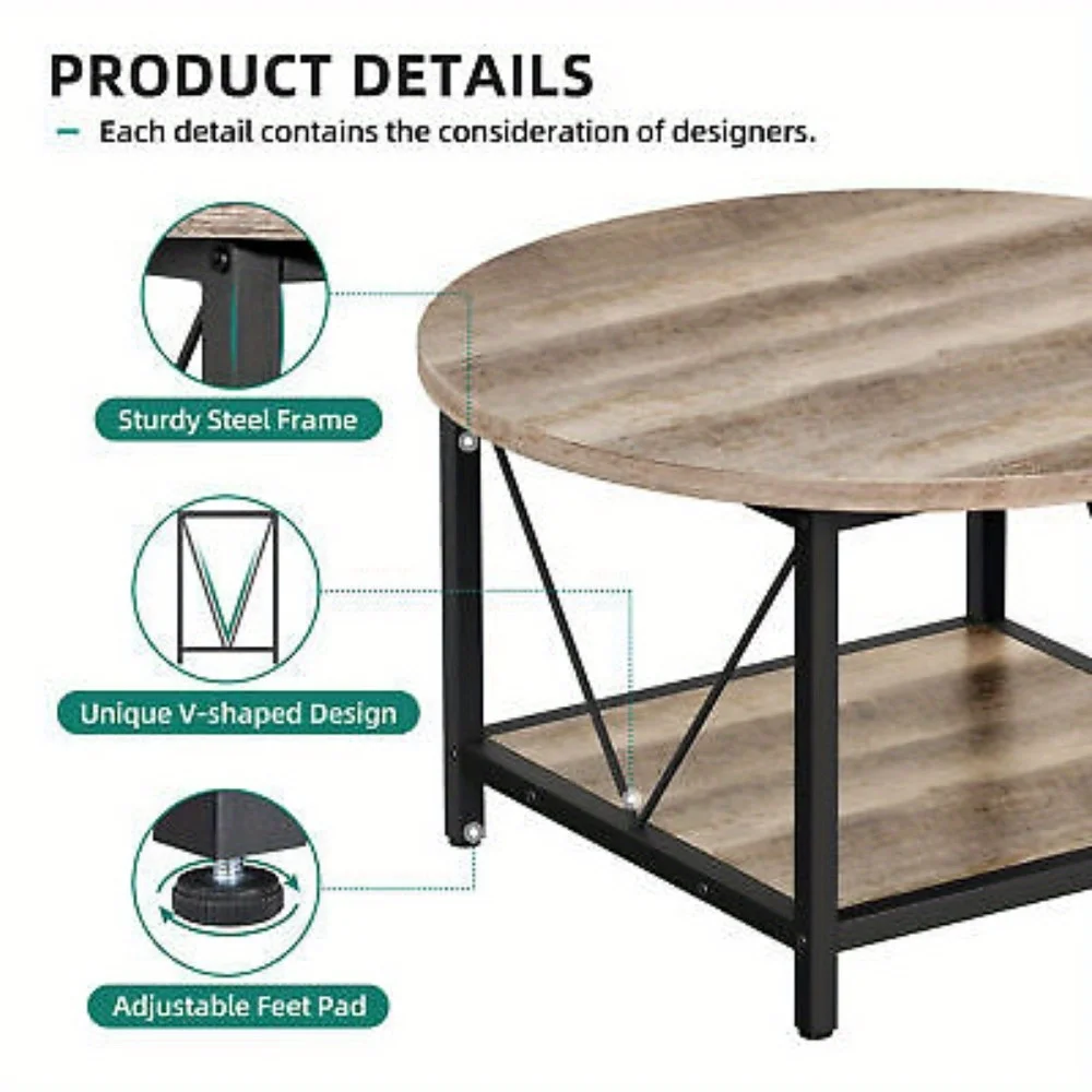 2-Tier Rustic Round Coffee Table Center Table with Storage Shelf Home Office