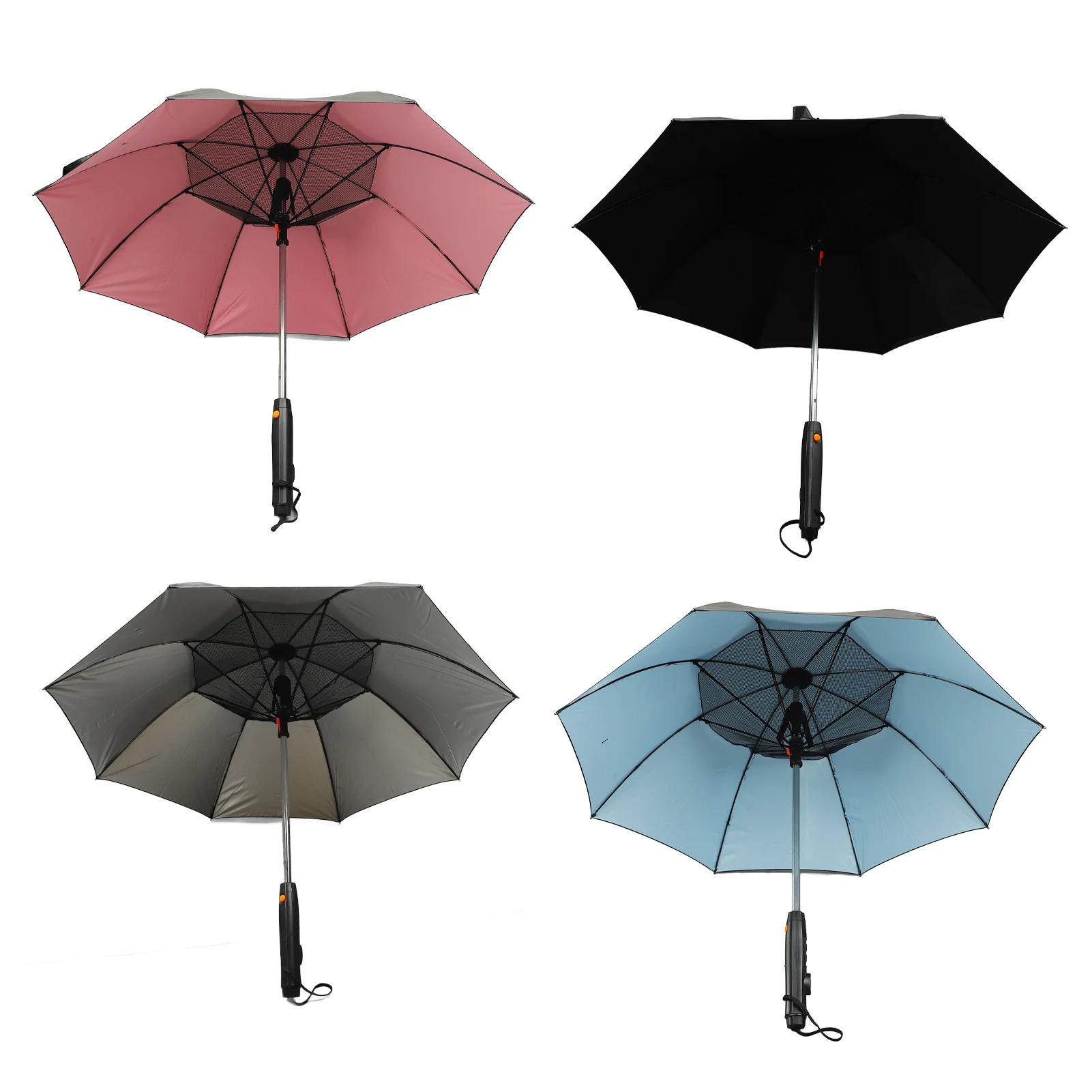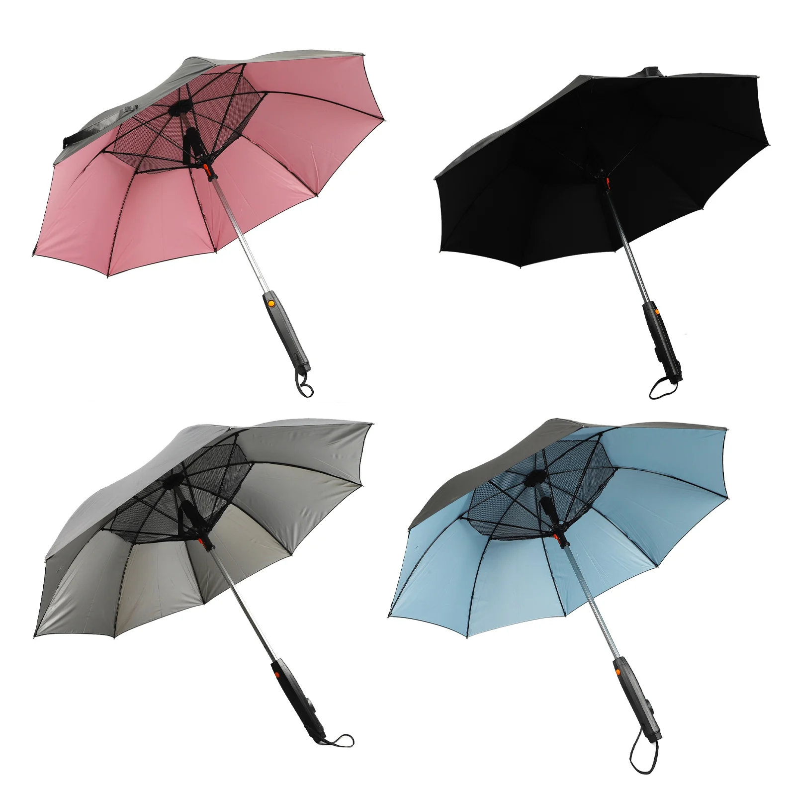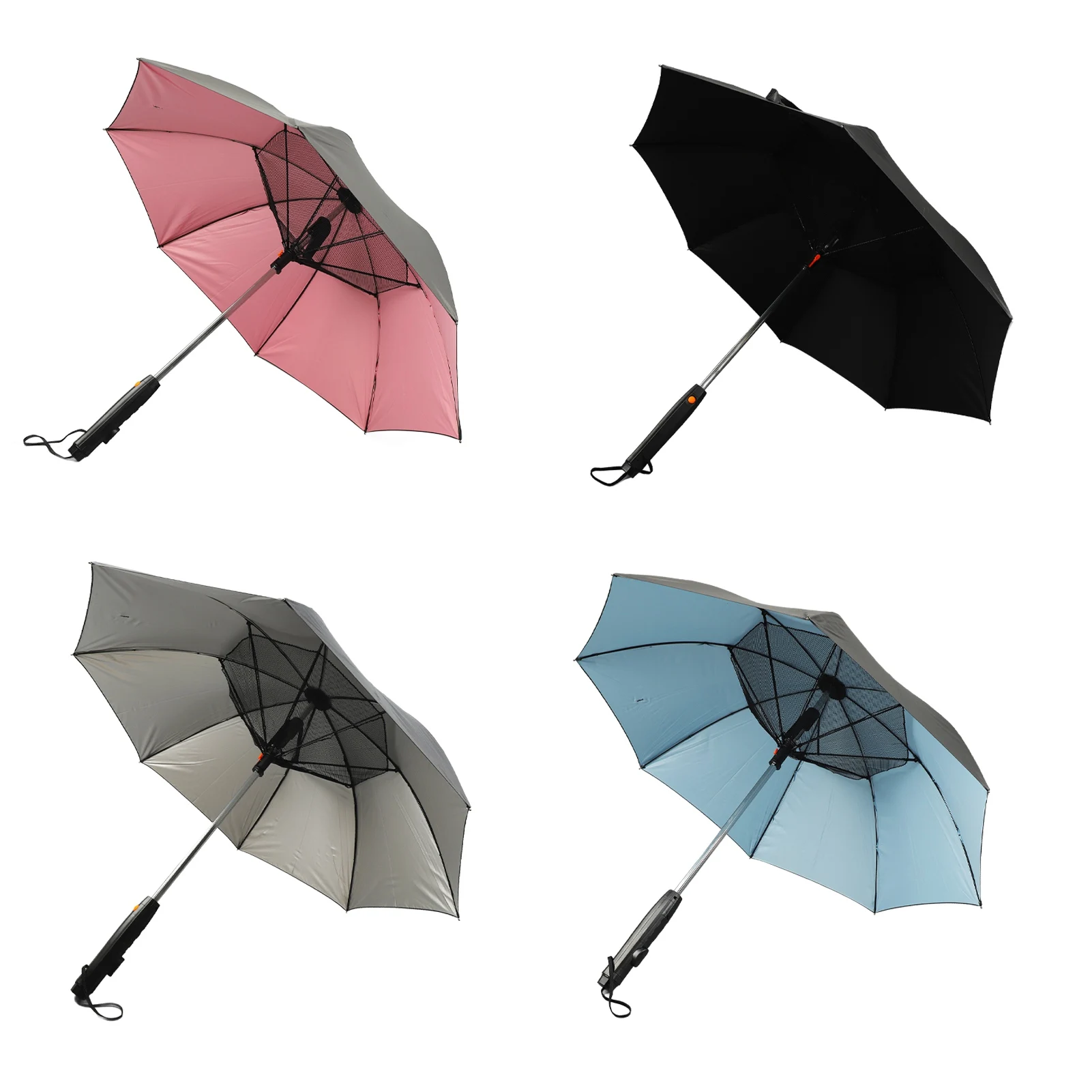 Sun Umbrella with Fan and Sprayer 8 Ribs Portable 3 in 1 UV Blocking Umbrella for Outdoor Summer