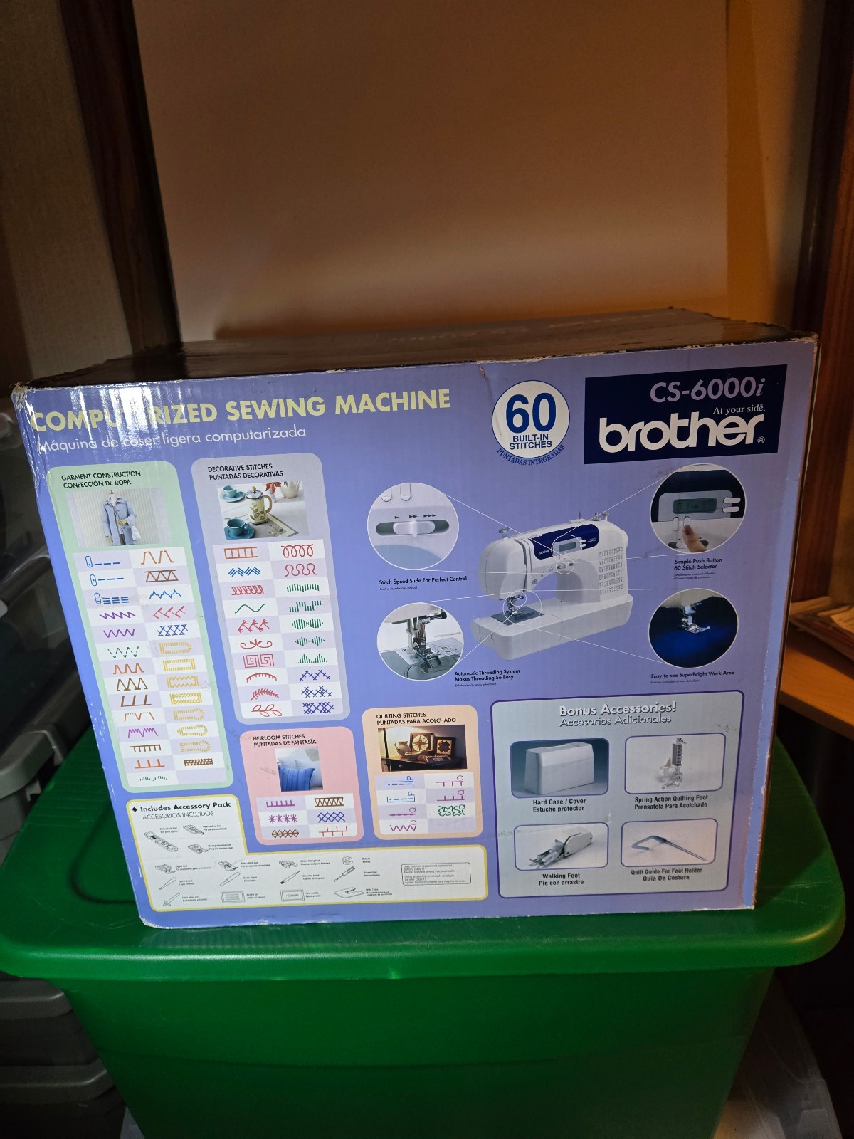 This sewing machine i bought it but never opened it or did anything with it. The box has a Lil wear but its still new never opened. If you have any problems at all with this purchase just message me and let me know and I will take care of any problems. Thanks.