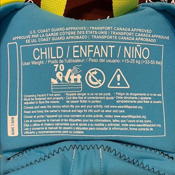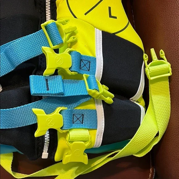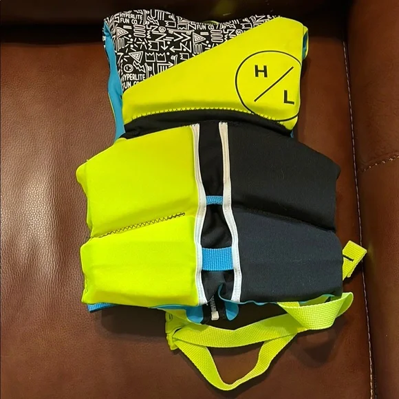Very gently used in almost new condition. No flaws.Size: >33 -55 lbs Ensure your child's safety and comfort with the Kids Swim Vest. Featuring vibrant neon yellow and blue colors, this vest is perfect for fun in the water. Designed with quality and style in mind, it's a must-have for young swimmers.