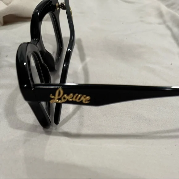 Discover the elegance of Loewe's black glasses, designed to complement any style with their sleek and modern aesthetic. These fashion-forward accessories feature a blend of classic and contemporary elements, making them a versatile addition to your eyewear collection. Crafted with precision, they offer both comfort and style for everyday wear.Size: 48.20 135I have worn the glasses a few times but no scratches. I only ship on the weekends.