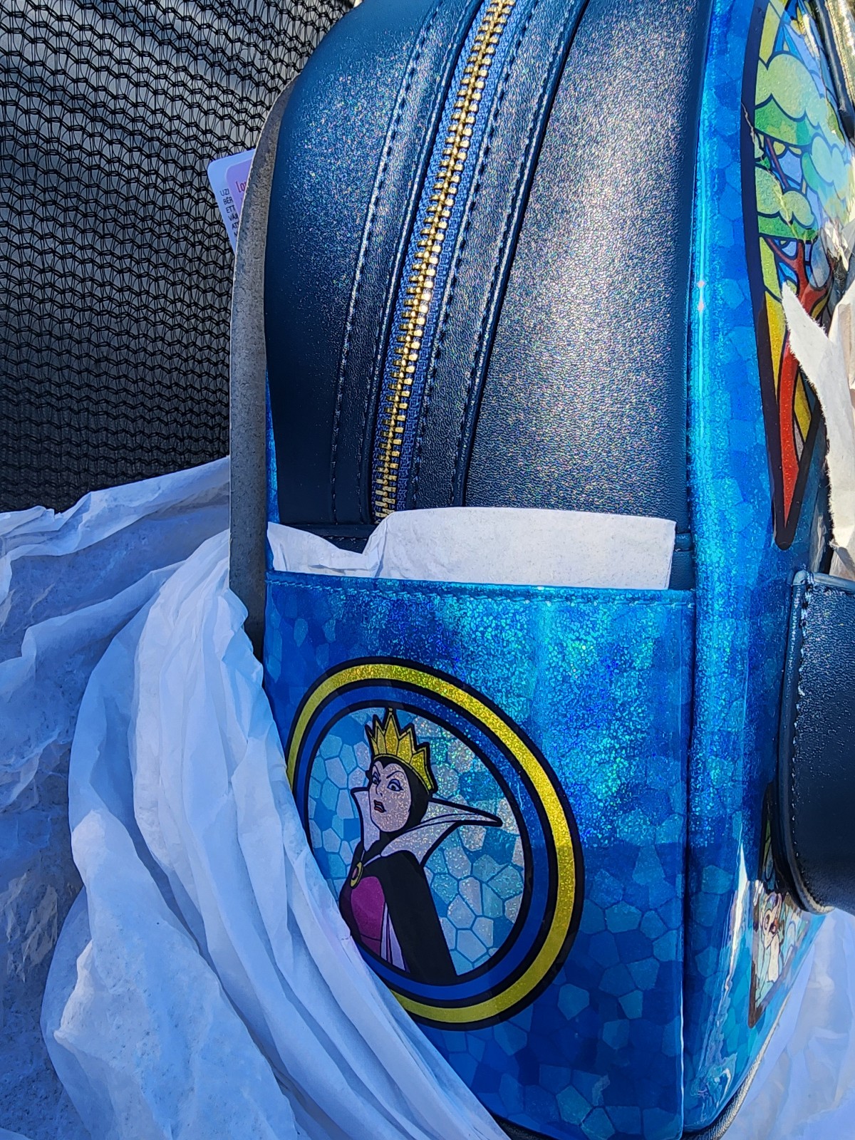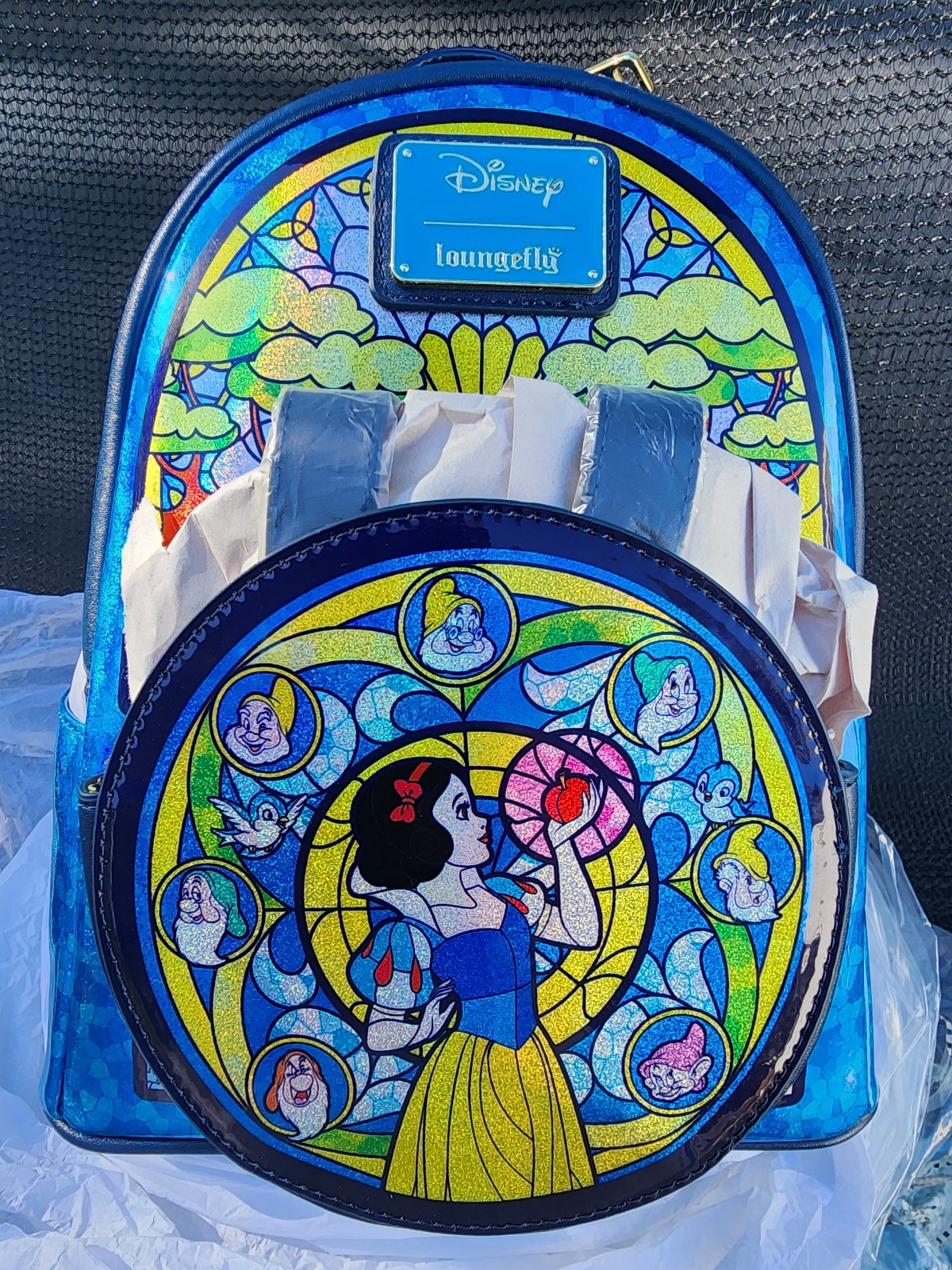 From Disney's Snow White, this mini-backpack features a beautiful Snow White-themed stained glass motif! Featuring incredible detail to bring Snow White to life, this Loungefly mini-backpack is made of vegan leather (polyurethane), has a front zipper compartment, side pockets, and adjustable back straps. Inside, the backpack continues the theme with unique, coordinating lining. Bring home a piece of Disney's Snow White today!