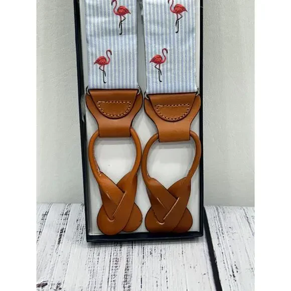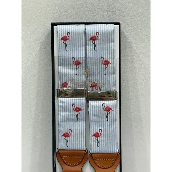 NEW Brooks Brothers Men's Silk Blue & White Striped Pink Flamingo Suspenders OSCondition: New With Box. Box may not be in perfect condition due to being in storage.Brand: Brooks BrothersSize: One SizeColor: MulticolorPlease reach out if you are unsatisfied with your purchase in any way. I strive to provide excellent customer service.Thank you for supporting my small business!
