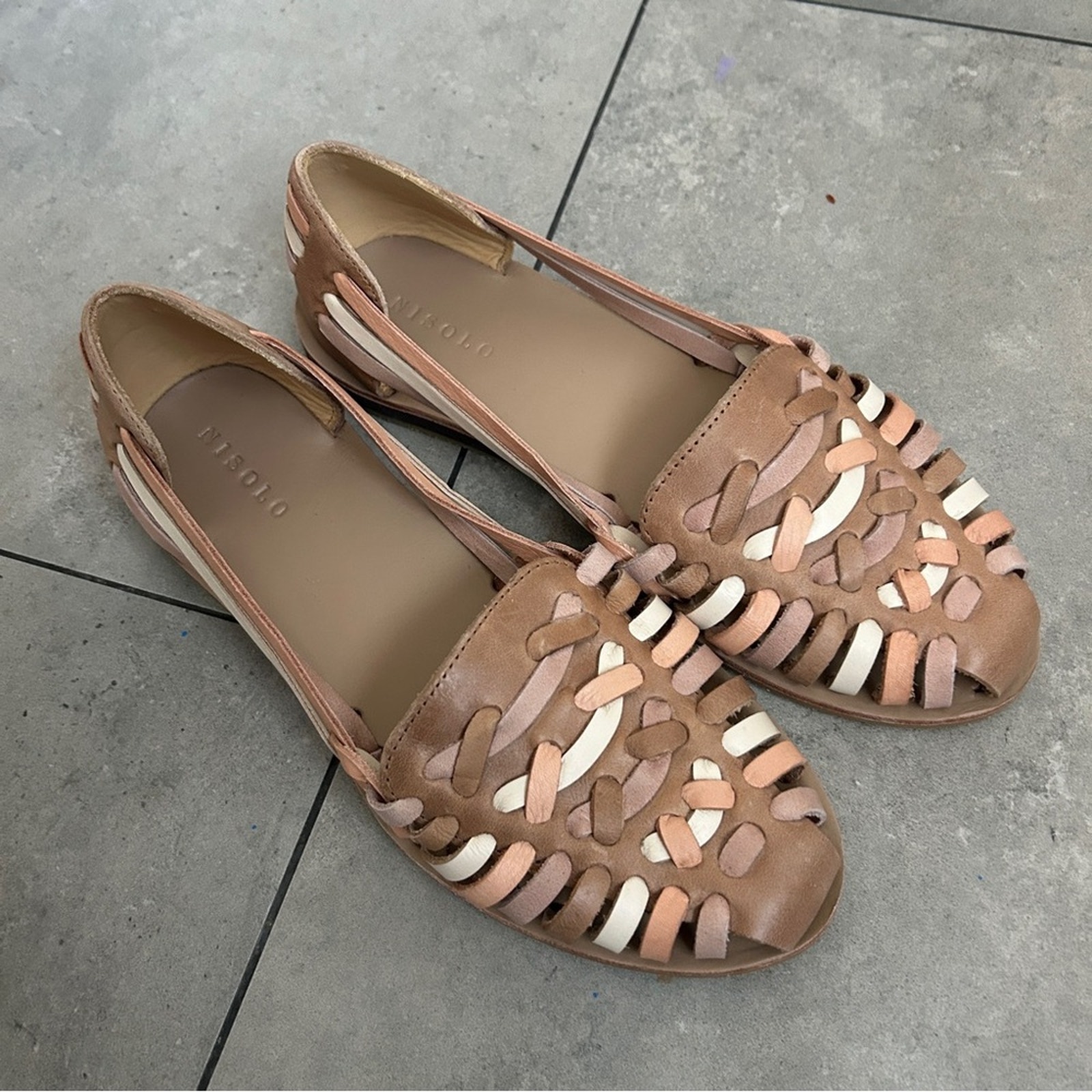 NEW Nisolo huarache tan multi leather slip on sandals 7. New never worn without box. Retails for $138. Rare color way in this style/multi.
