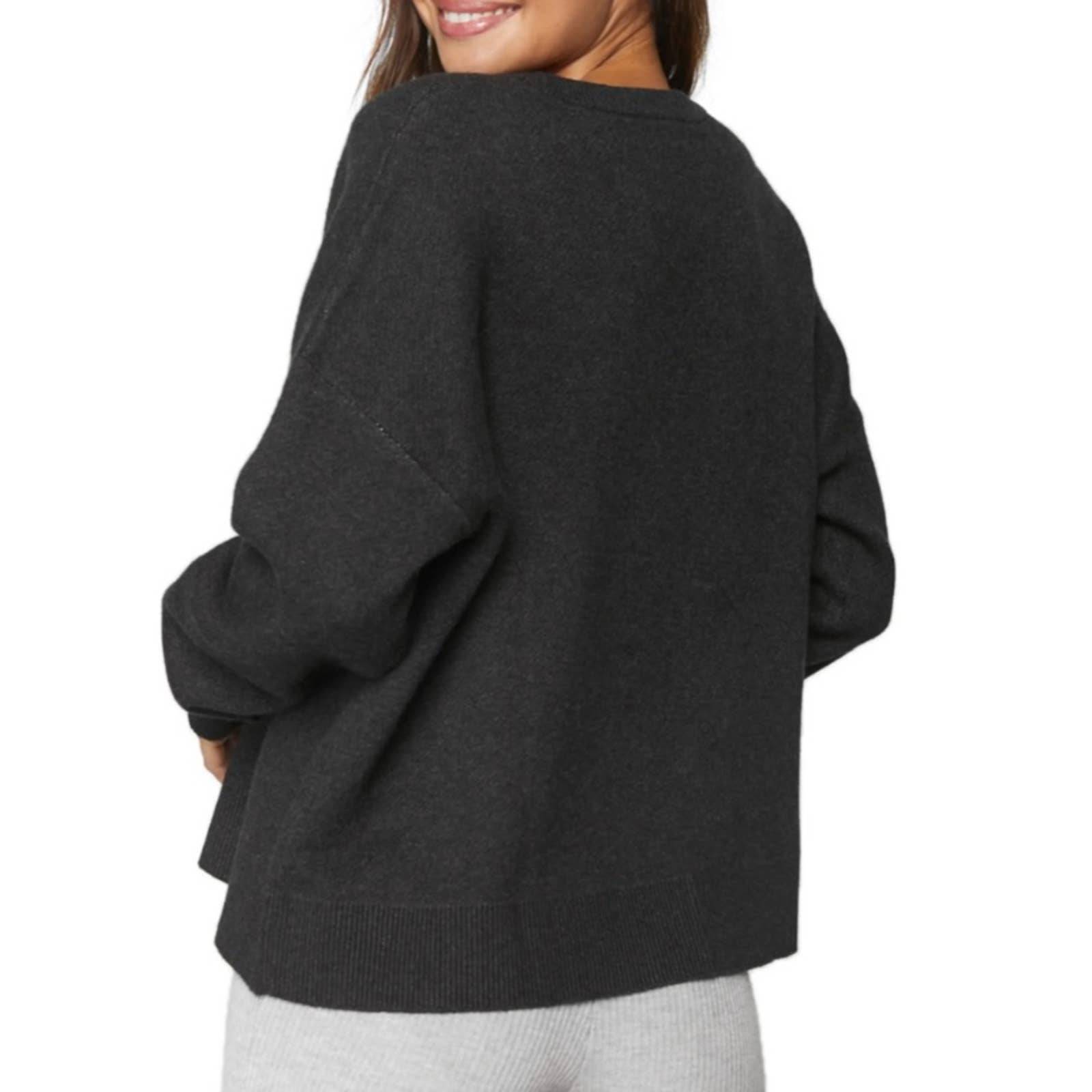 You'll find it practically impossible to not 'choose happiness' wearing this cashmere-kissed sweater shaped with a swingy silhouette and an intarsia text message.