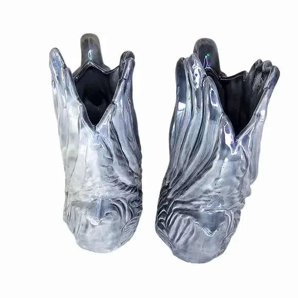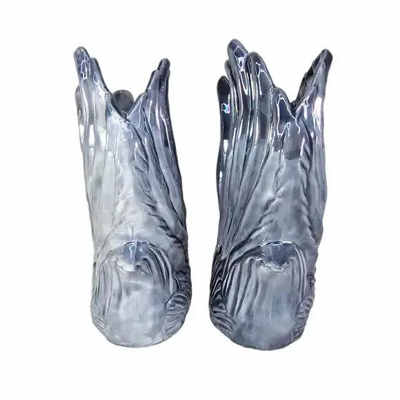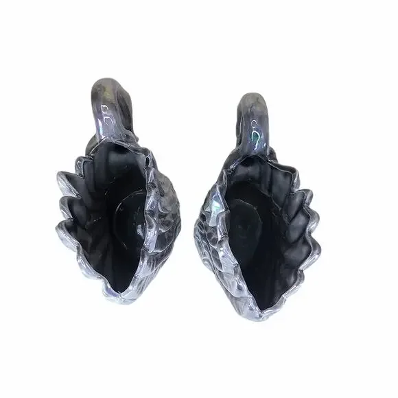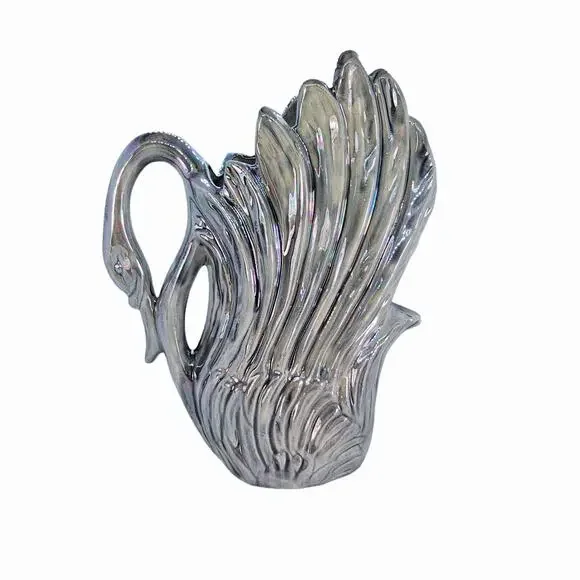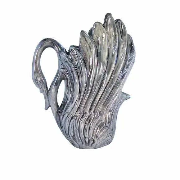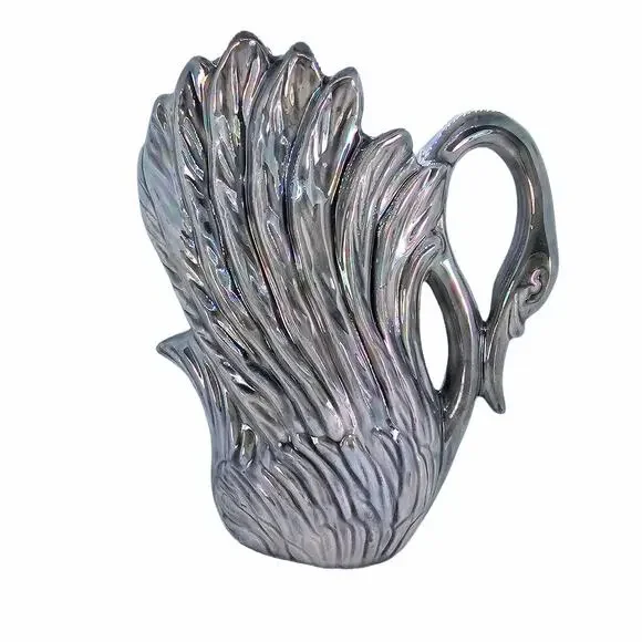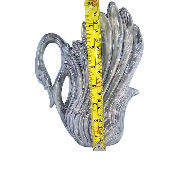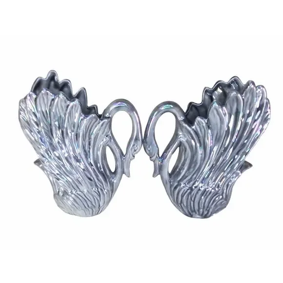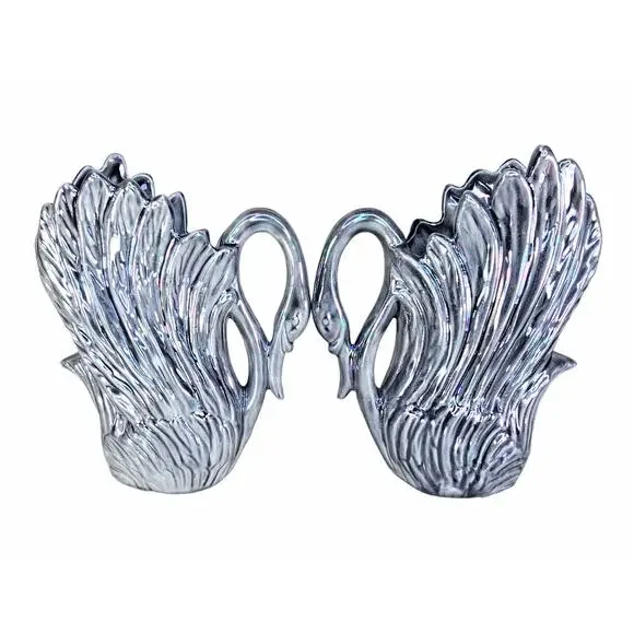 Paint your own pottery from 1985.Pair of swan vases in silver with an aurora borealis glaze.The swans are two different shades of grey.No cracks, there is a small chip on the beak of one of the swans (see image 6).This item cannot be bundled.See ALL images for condition and measurements.Images are a part of the description. Please let me know if you have any questions.