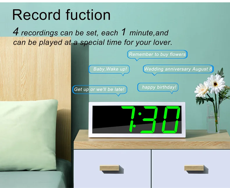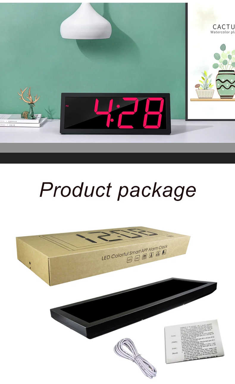 Smart digital clock, features record & sound activate & countdown function, stepless/ auto brightness and stepless volume adjustment. Simple and modern style perfectly integrated with your home. With more functions for you to discover and enjoy the convenience of smart life!