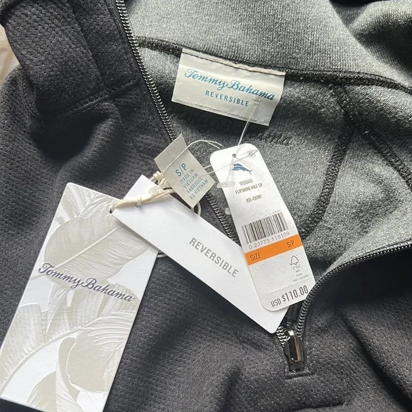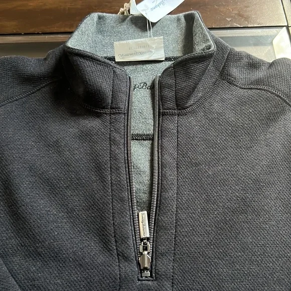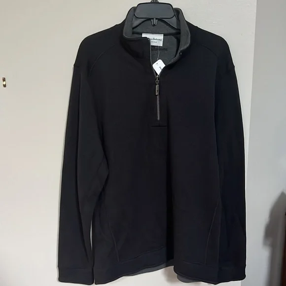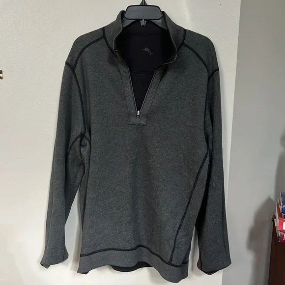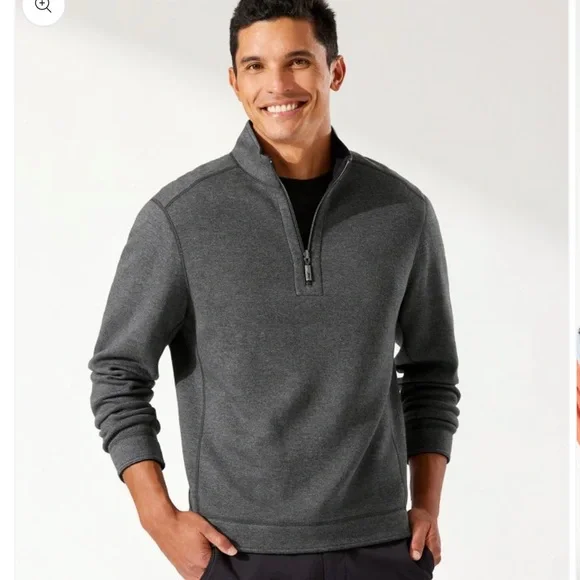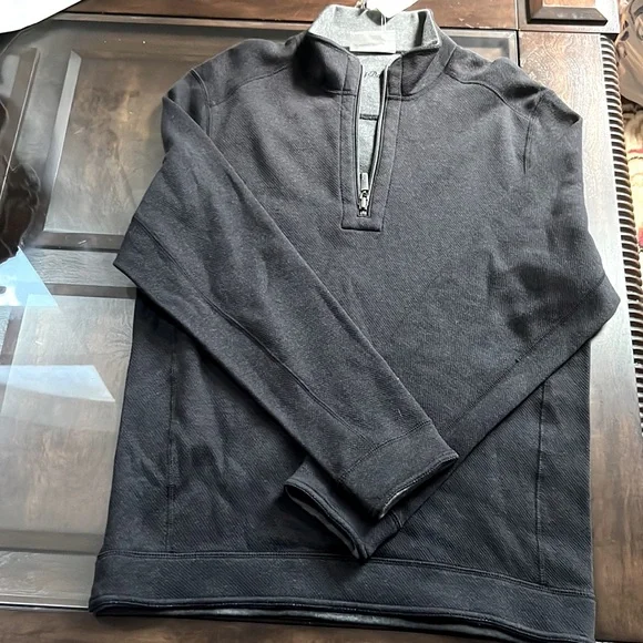 Own the changing seasons with this luxe sweatshirt, made to give you the advantage against cooler weather. Fully reversible with stylish contrast stitching, this two-in-one combo embodies your versatile spirit while keeping you comfortable.79% cotton, 21% TENCEL™ lyocell.Machine wash cold with like colors on gentle, tumble dry low. Non-chlorine bleach if needed. Cool iron. Can also dry clean.Reversible half-zip pullover.Self fabric collar, cuff, and hem.Heather on the reverse side with rib trims.Color is black and it reverses to grey.