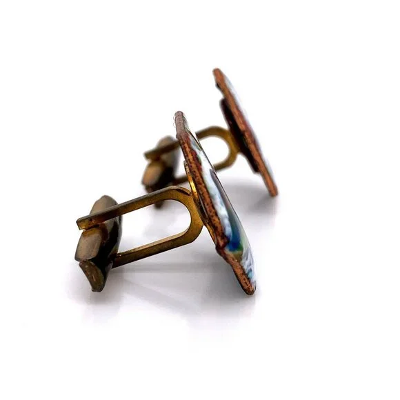 VTG Estate Dichroic Fused Glass Men’s Colorful Unique Cufflinks! 155 These have a really great design. They measure 1” across the face and have a combined weight of 16.0 grams. These feature a patent number on them and have some minor gold tone loss. Nice vintage condition.If you have any questions or concerns before purchasing please message me and I will get back with you asap. Thank you!